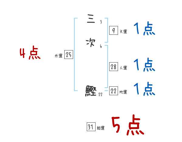 三次鰹さんの画数の鑑定結果