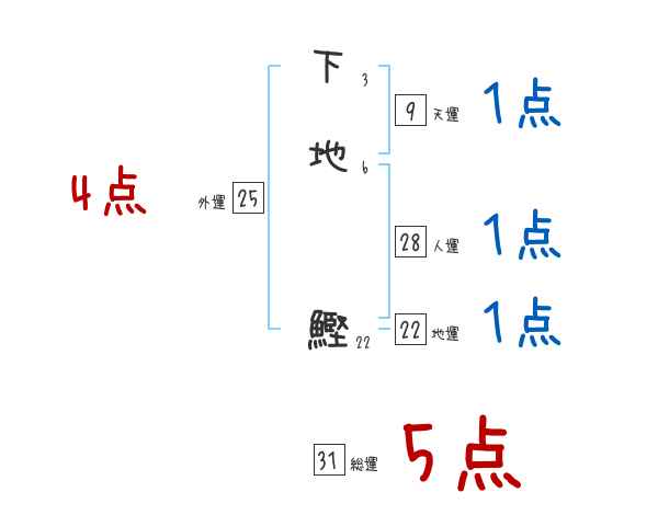下地鰹さんの画数の鑑定結果