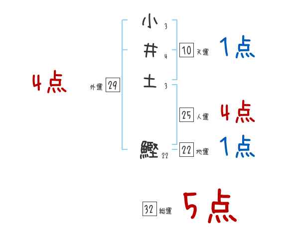 小井土鰹さんの画数の鑑定結果