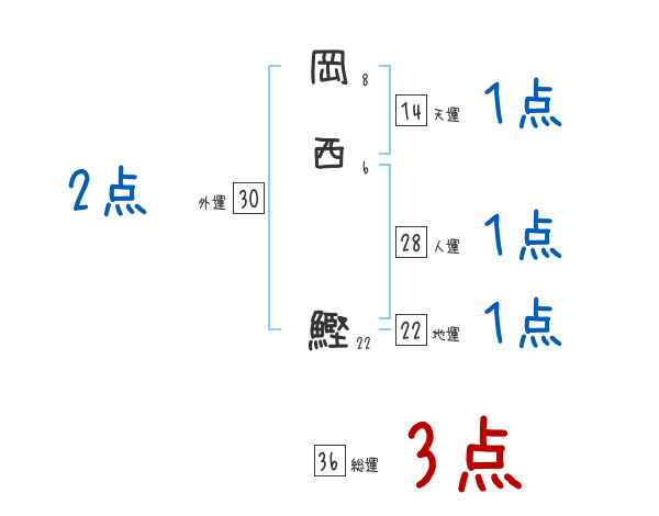 岡西鰹さんの画数の鑑定結果