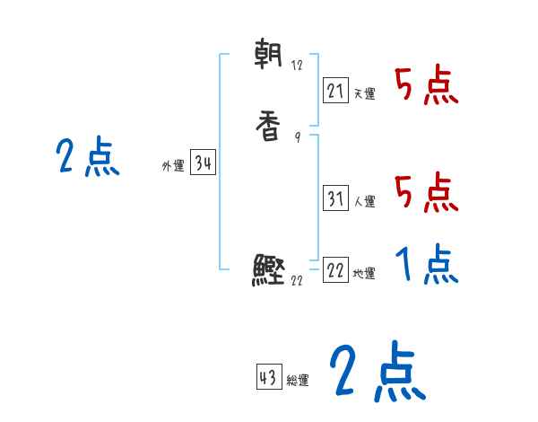 朝香鰹さんの画数の鑑定結果