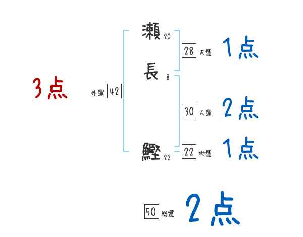 天運![]() | 瀬長鰹さんの天運は28画の1つ星!家庭環境に注意。スポーツで活躍できる能力があるかも。 家系が持つ宿命的な運勢を表します。祖先から受け継いだ苗字ですので自分の力が及びません。家柄を象徴します。 |