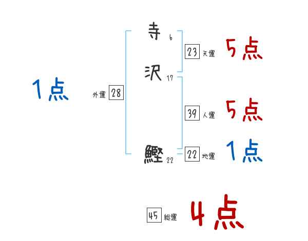 寺沢鰹さんの画数の鑑定結果