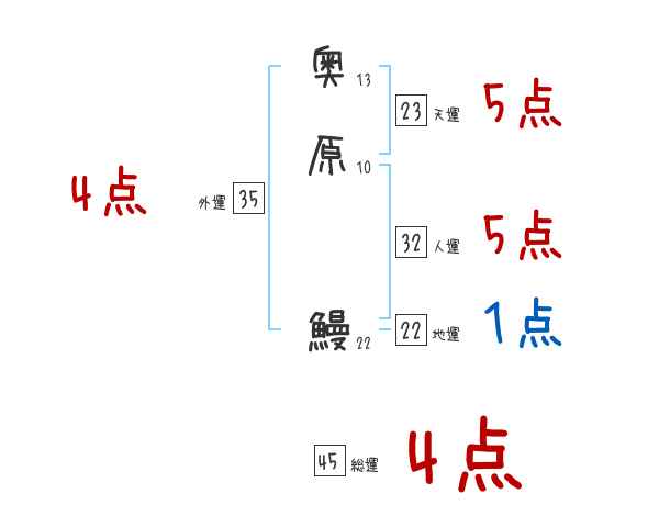 奥原鰻さんの画数の鑑定結果