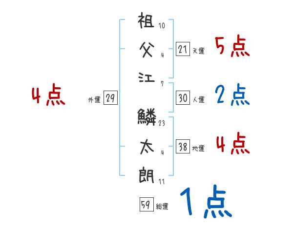 祖父江鱗太朗さんの画数の鑑定結果