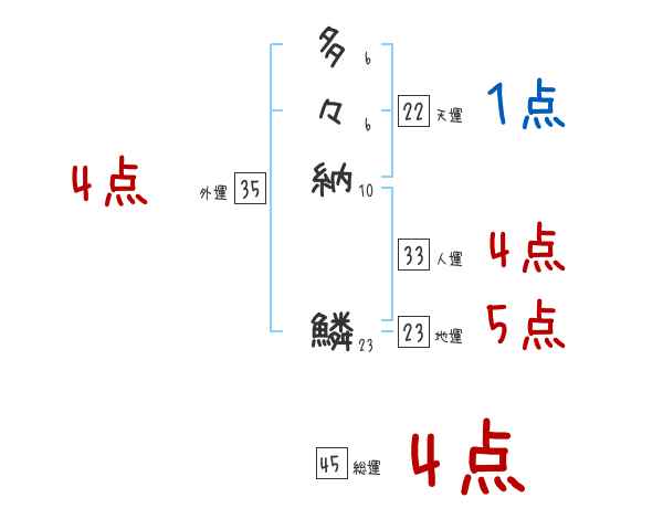 多々納鱗さんの画数の鑑定結果