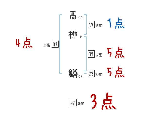総運![]() | 髙栁鱗さんの総運は42画の3つ星!病気に注意。多芸であるが消極的でおとなしい。 あなたの人生を表す1番重要な運勢です。生涯を通じて影響する総合運となり、主に50歳以降の晩年期に影響を及ぼします。 |