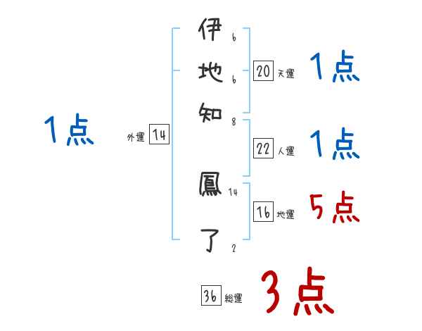 総運![]() | 伊地知鳳了さんの総運は36画の3つ星!先見性が豊かです。多少神経質で苦労することも。 あなたの人生を表す1番重要な運勢です。生涯を通じて影響する総合運となり、主に50歳以降の晩年期に影響を及ぼします。 |