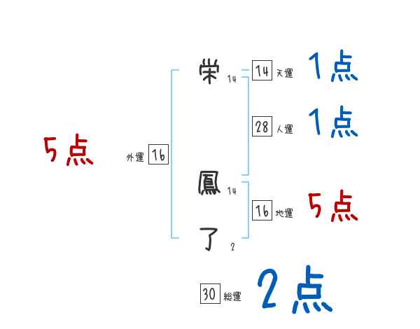 天運![]() | 栄鳳了さんの天運は14画の1つ星!人に対して優しいがストレスを溜め込みがち。人間関係のトラブルを避けるよう気をつけましょう。 家系が持つ宿命的な運勢を表します。祖先から受け継いだ苗字ですので自分の力が及びません。家柄を象徴します。 |