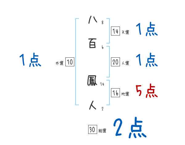 八百鳳人さんの画数の鑑定結果
