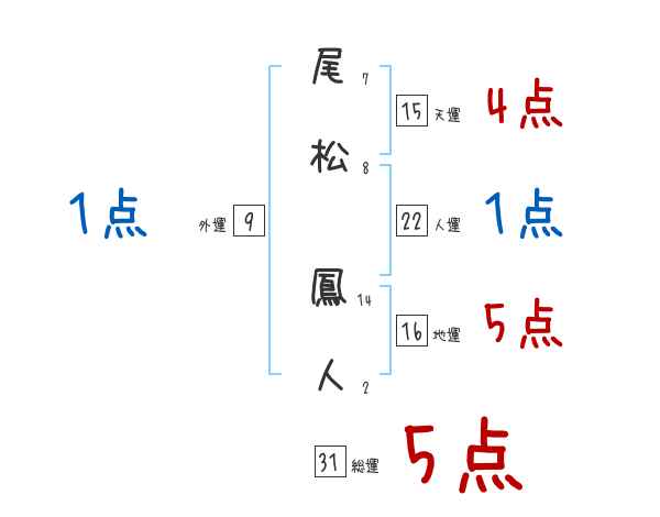 尾松鳳人さんの画数の鑑定結果