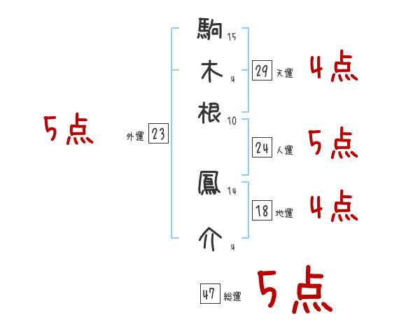 駒木根鳳介さんの画数の鑑定結果