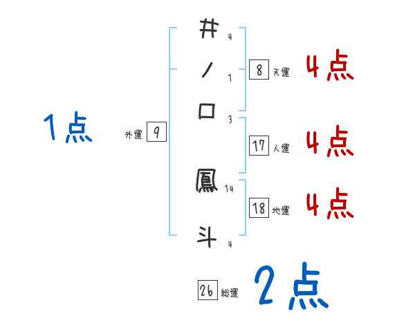 外運![]() | 井ノ口鳳斗さんの外運は9画の1つ星!消極的で才能を発揮することが苦手なことも。周りの意見に耳を傾けましょう。 生活面を象徴する運勢です。外部から受ける影響力を表し、結婚運、家庭運や職場、環境への順応性を表します。 |