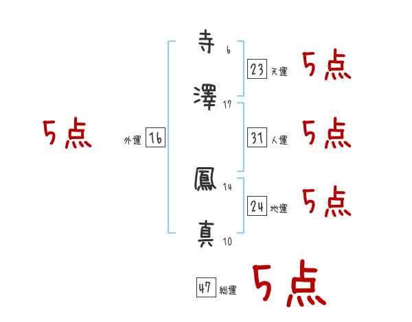 寺澤鳳真さんの画数の鑑定結果