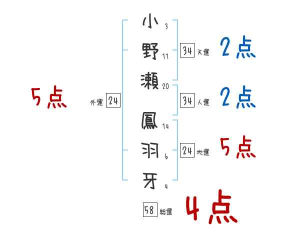 小野瀬鳳羽牙さんの画数の鑑定結果