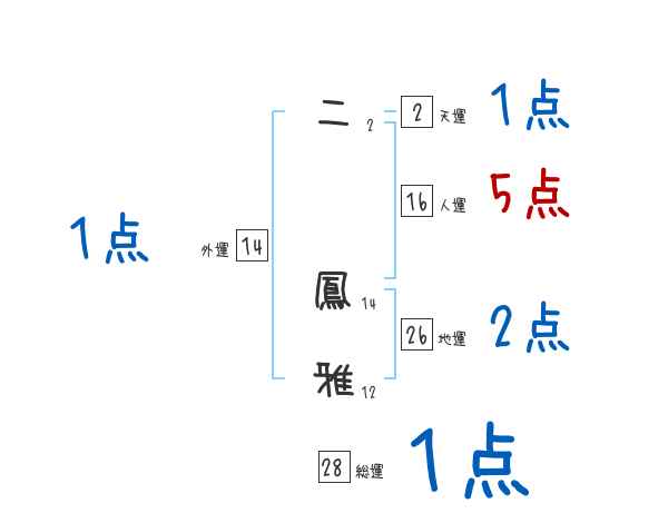 二鳳雅さんの画数の鑑定結果