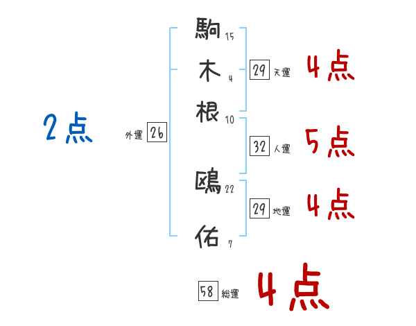 駒木根鴎佑さんの画数の鑑定結果