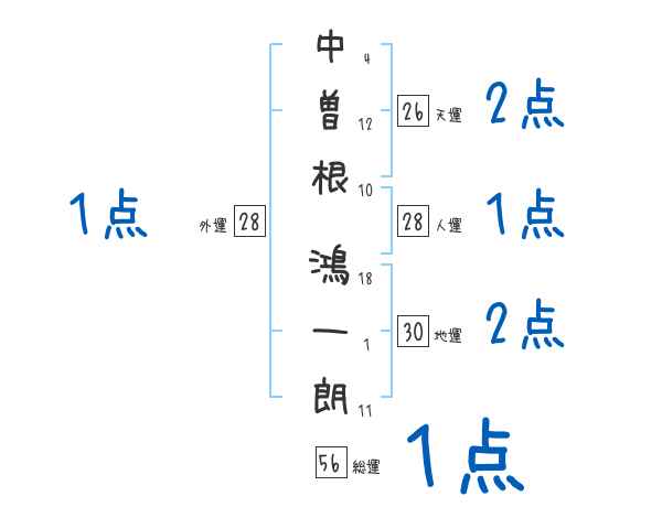 中曽根鴻一朗さんの画数の鑑定結果