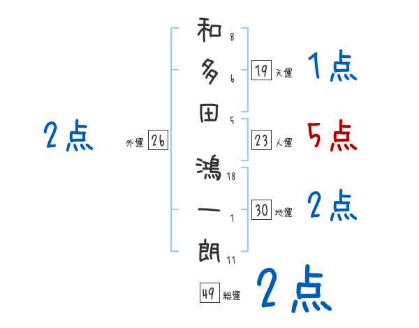 和多田鴻一朗さんの画数の鑑定結果