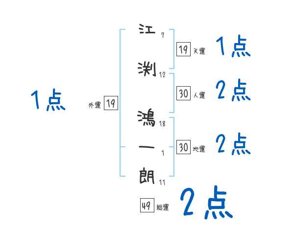 地運![]() | 江渕鴻一朗さんの地運は30画の2つ星!浮き沈みの激しさに注意しましょう。 個性を表す基礎的な運勢です。性格形成や対人関係、行動力など家庭環境に影響されます。主に誕生してから20歳くらいまでの若年期の運勢を表します。 |