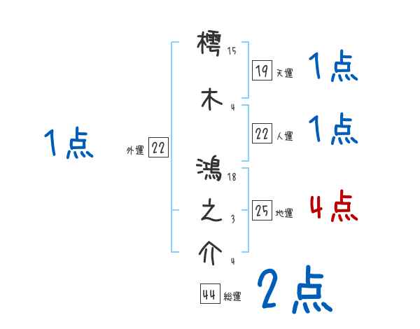 外運![]() | 樗木鴻之介さんの外運は22画の1つ星!努力することが苦手ないっぽう手先が器用。芸術性にも優れる。 生活面を象徴する運勢です。外部から受ける影響力を表し、結婚運、家庭運や職場、環境への順応性を表します。 |