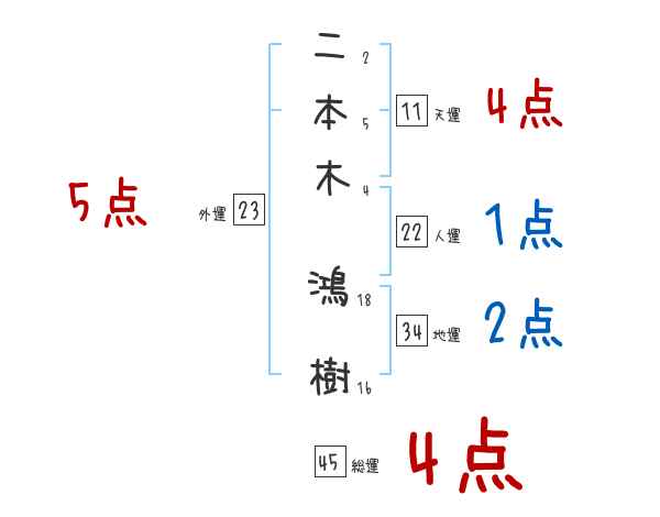 二本木鴻樹さんの画数の鑑定結果