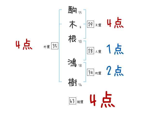 駒木根鴻樹さんの画数の鑑定結果