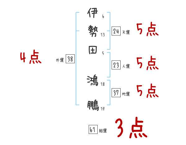 伊勢田鴻鵬さんの画数の鑑定結果