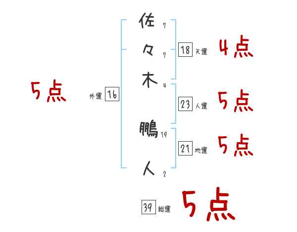 佐々木鵬人さんの画数の鑑定結果
