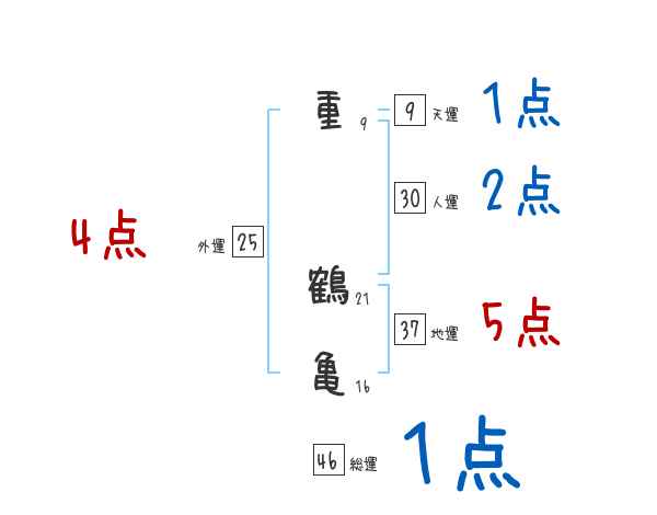 重鶴亀さんの画数の鑑定結果
