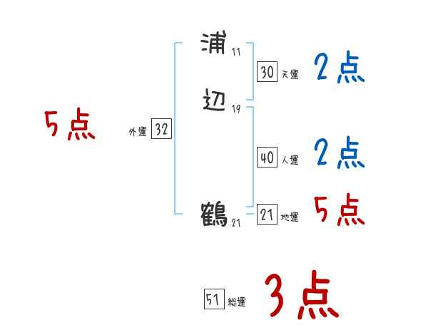 浦辺鶴さんの画数の鑑定結果