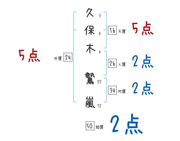 久保木鷙嵐さんの画数の鑑定結果