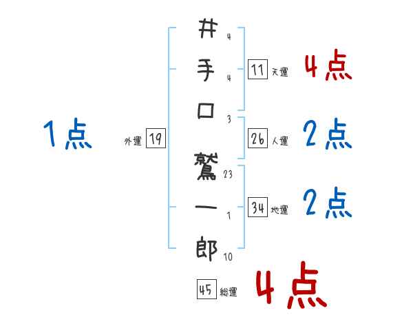 井手口鷲一郎さんの画数の鑑定結果
