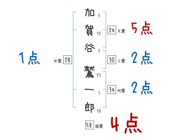 天運![]() | 加賀谷鷲一郎さんの天運は24画の5つ星!家庭運が良く順調な人生。金運にも恵まれる。 家系が持つ宿命的な運勢を表します。祖先から受け継いだ苗字ですので自分の力が及びません。家柄を象徴します。 |