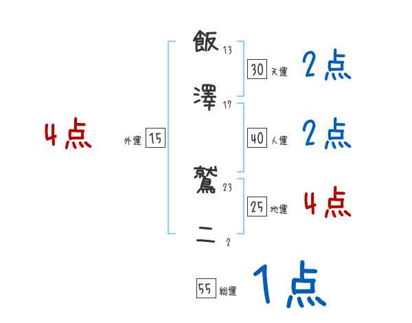 飯澤鷲二さんの画数の鑑定結果