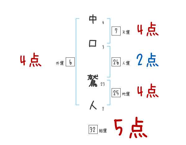 中口鷲人さんの画数の鑑定結果