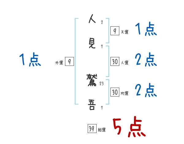 人見鷲吾さんの画数の鑑定結果