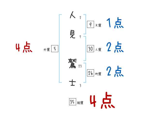 人見鷲士さんの画数の鑑定結果