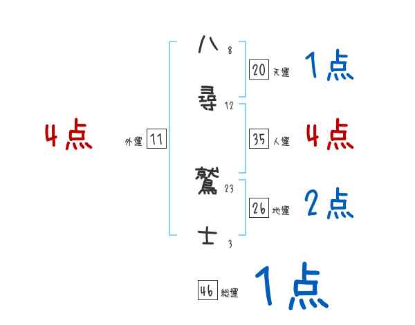 八尋鷲士さんの画数の鑑定結果