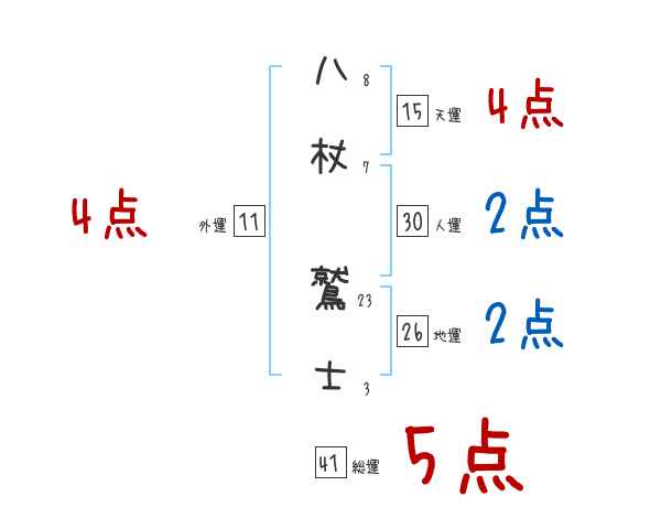 八杖鷲士さんの画数の鑑定結果