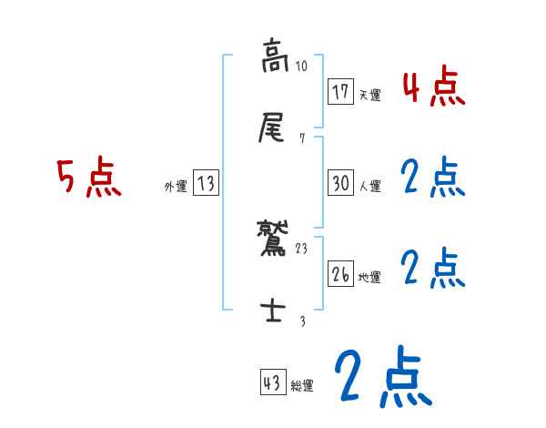 高尾鷲士さんの画数の鑑定結果