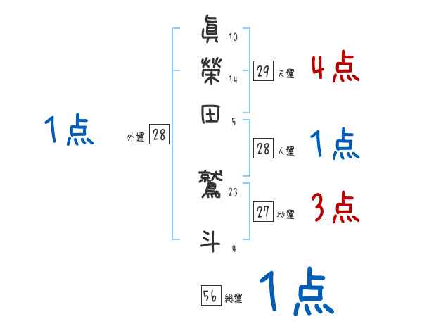 天運![]() | 眞榮田鷲斗さんの天運は29画の4つ星!完全主義で才能がある。厳格な心の持ち主。 家系が持つ宿命的な運勢を表します。祖先から受け継いだ苗字ですので自分の力が及びません。家柄を象徴します。 |