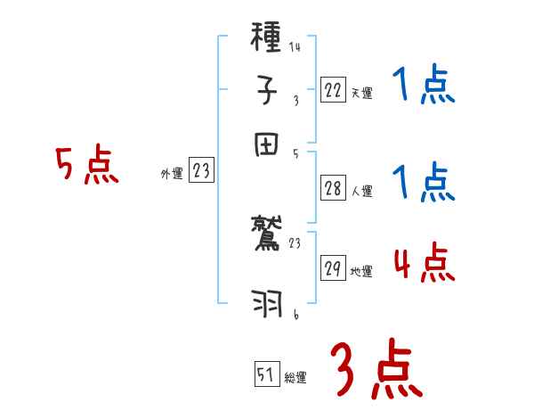 種子田鷲羽さんの画数の鑑定結果