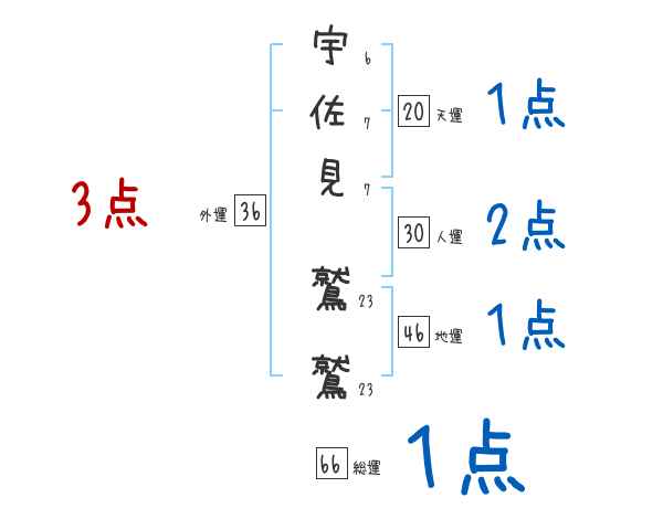 宇佐見鷲鷲さんの画数の鑑定結果