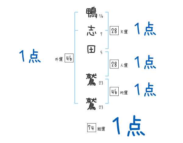 鴨志田鷲鷲さんの総運は74画の1つ星