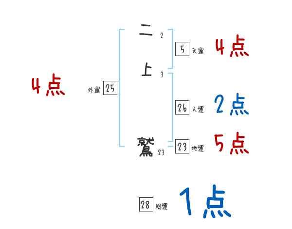 二上鷲さんの画数の鑑定結果