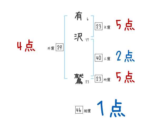 有沢鷲さんの画数の鑑定結果