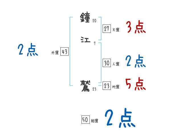 鐘江鷲さんの画数の鑑定結果