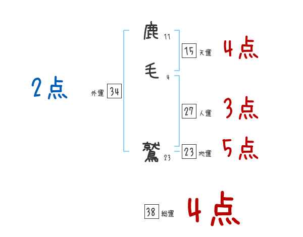 鹿毛鷲さんの画数の鑑定結果