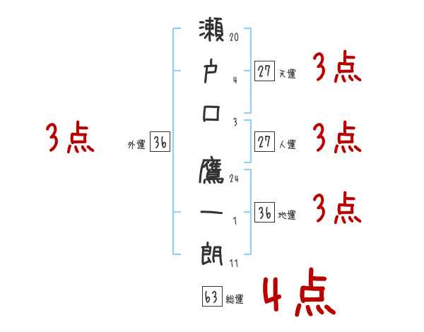 瀬戸口鷹一朗さんの画数の鑑定結果
